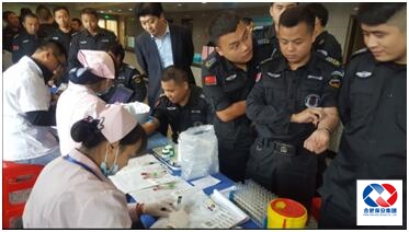 据了解,献血现场人头攒动,在合肥市中心血站工作人员的引导下,队员们挽起袖子,或在认真填表或在等待抽血,以实际行动演绎了一曲“爱的奉献”。与此同时,中心血站工作人员在现场还向队员们宣传了献血小常识,并叮嘱献血后的注意事项,现场井然有序。
