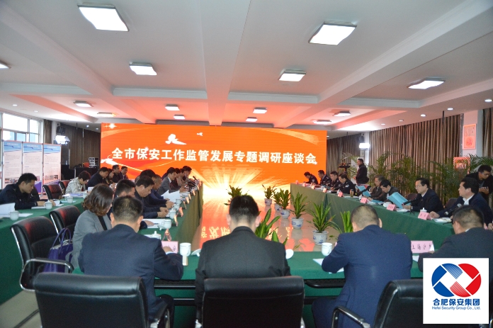 会前,姜明一行饶有兴趣的听取了12家保安企业简介及经营管理特色展板介绍,对各家企业的特色创新做法予以称赞。座谈会上首先听取了保安集团、安徽中天等六家企业负责人关于企业发展现状、行业发展建议的发言汇报以及市工商局、市国资委、市综治办相关负责人的汇报和建议。