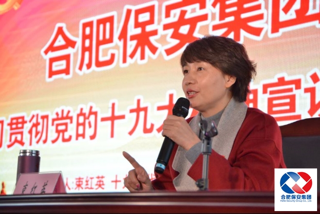 束红英首先介绍了安徽省十九大代表构成和选举情况,并以亲历者的视角介绍了十九大会议的盛况和参会见闻。她指出,党的十九大代表构成充分体现了党在新时代的用人和政绩导向,作为全省城市街道社区唯一代表,她对十九大的会风会况所折射出的新气象新风貌深有感触,从“严格严明、紧凑紧张、开明开放、信心信赖”四个方面,以点滴细微入手,向大家娓娓道来大会严明的纪律、庄重朴素的会风、紧张的议程和民主讨论情况,对大会选举以习近平总书记为核心的新一代领导集体充满了喜悦之情,让大家深切感受到我们党的成熟和自信,感受到新一代中央领导集体严谨细致的务实作风和浓厚的家国情怀。会上,束红英还就十九大精神进行了解读。她指出,党的十九大报告内容丰富,内涵精深,要深刻学习把握和讲清楚十九大报告所体现出的“新思想、新时代、新特点、新目标、新要求”,在全面进行伟大斗争、建设伟大工程、推进伟大事业、实现伟大梦想进程中,要始终把加强党的建设和领导贯穿其中,最后,她以习近平总书记“厚重的历史情怀、博大的为民情怀、忠贞担当的家国情怀、自信有为的天下情怀”寄语大家,在实现中华民族伟大复兴的征程中,努力做好各项工作。