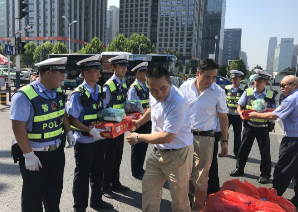 7月20日,集团副总经理叶春胜前往瑞达协警公司慰问高温天气下正在路上执勤的协警,送上防暑降温用品,感谢他们的默默付出,并叮嘱他们路面温度极高,要注意好自身安全。