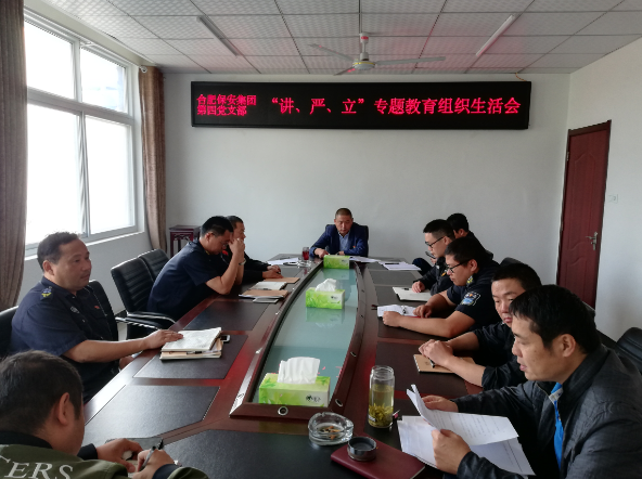 近日,保安集团第四党支部召开“讲忠诚、严纪律、立政德”专题组织生活会,会前详细制定了实施方案,组织全体党员干部深入学习研讨党的十九大精神《党章》和党内法规制度,对新修订的《中国共产党纪律处分条例》划重点、吃精髓,并以鲁炜为反面典型,联系“陈杨周”案件,深入查摆存在问题,深刻进行党性分析,通过身边人、身边事的案例,对照检查、自我剖析、反躬自省夯实思想。