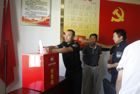 8月29日,押运分公司西门基地党员活动室正在召开保安集团第二党支部支委委员增补选举党员大会。