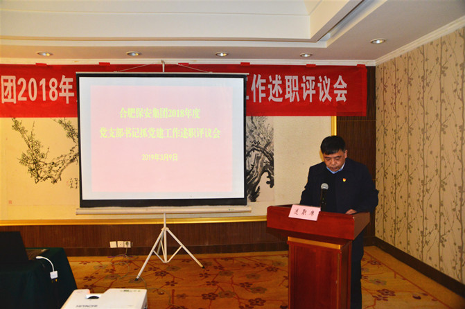 为贯彻落实新时代党的建设总要求,推动全面从严治党向企业延伸,促进基层组织建设全面进步、全面过硬。3月9日上午保安集团党委召开2018年度党支部书记抓党建工作述职评议会。会议由集团党委书记应长春主持,党委副书记苏孙铭,集团党委委员以及来自集团各基层党组织党员与群众代表共50人参加会议。