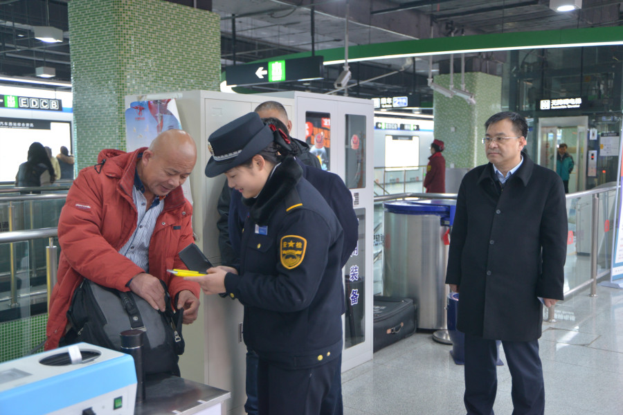 【1月23日,开云手机官方站登录入口党委副书记、总经理苏孙铭带领公共安全分公司负责同志,到火车站站点检查督导疫情防控期间安检工作】