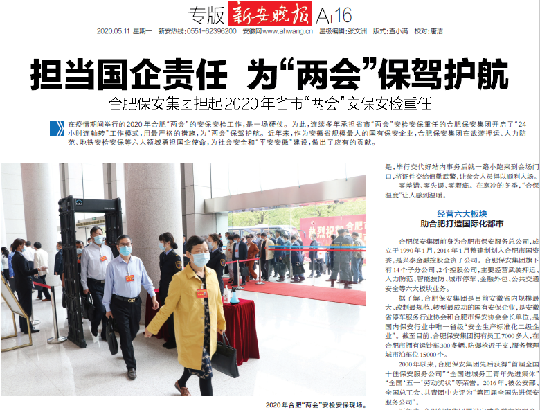 新安晚报报道开云手机官方站登录入口承担2020市两会安保重任