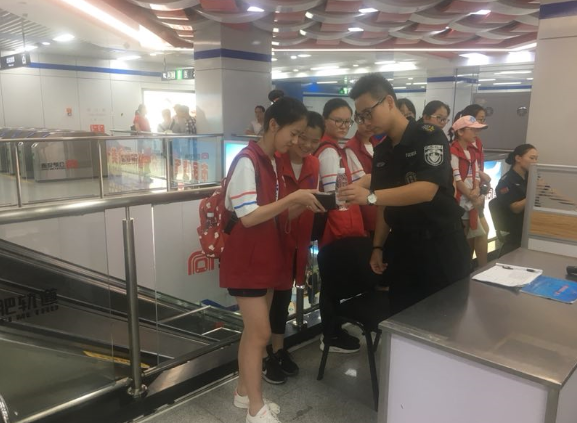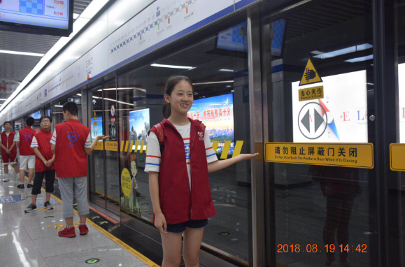 “为轨道服务,让乘客满意,我是地铁志愿者”,2018年8月19日下午16点,在合肥四牌楼地铁站,刚刚认真履行完地铁志愿服务的安徽省合肥市第四十二中学七(五)班的同学们,个个脸上洋溢着满足和快乐。