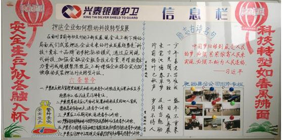 为丰富企业文化,增加员工安全生产意识,及时了解跟进集团公司2019年工作步伐,节前肥西县分公司利用现有资源出刊了一期以安全生产和科技转型为主题的板报。尽管新媒体的快速发展“挤兑”了板报这一传统的宣传方式,但是此次的板报内容全面、特色鲜明,涵盖了员工日常生活、学习、训练瞬间以及安全生产和科技转型的相关文章,让员工深切感受到了中国传统佳节喜庆氛围的同时也切实了解了我们的企业文化精神。