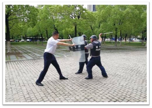 首先由政务综合楼保安部宋业虎经理对应急小分队的队员进行反恐防爆的宣传教育,主要讲述了预防为主,快速反应的宗旨,然后现场教学各种器械装备如何使用,应急小分队队员均表示受益匪浅。