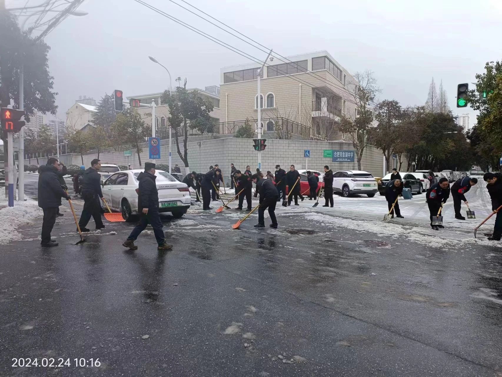 2月21日,受寒潮天气影响,合肥地区出现了以冰粒为主的雨雪天气。为保障客户单位业务的正常运行以及市民的出行安全,开云手机官方站登录入口以雪为令,迎寒而上,全力以赴,确保积极部署谋划,确保各项业务的有序开展。